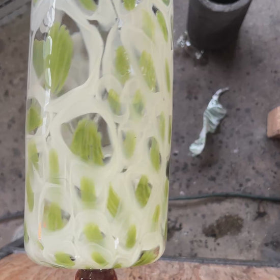Green and white flower vase